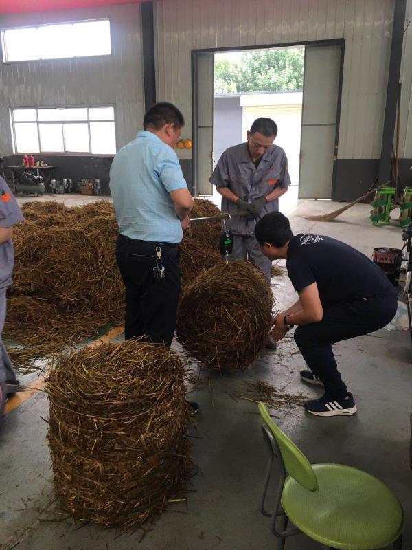 鉴定检验人员要求对机器进行连续工作18小时测试,必须保证工作期间零故障率,这是对机器本身的质量和操作人员的检验,并进行了现场草捆称重,检验草捆含水量,每包草捆的重量是否均匀,尺寸是否一致。