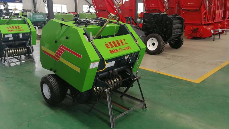 新款圆草捆打捆机性能优点:1、机器滚筒全部采用2MM冷拉无缝钢管,好处就是能有效防止草捆密度过高时滚筒开裂,变形,影响生产。2、采用最先进的电磁阀式油泵,内置强磁,解决了油泵磨损所产生的异物进入油路造成的油缸损坏。3、机器传动齿轮和链条,采用高强度,耐磨钢材,确保机器耐用。4、捡拾器护圈采用65号锰钢板材一次冲压而成,耐磨不易变形。