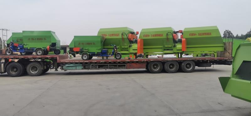 TMR全混合日粮饲料搅拌机、电动撒料车整车发往内蒙养殖大户。